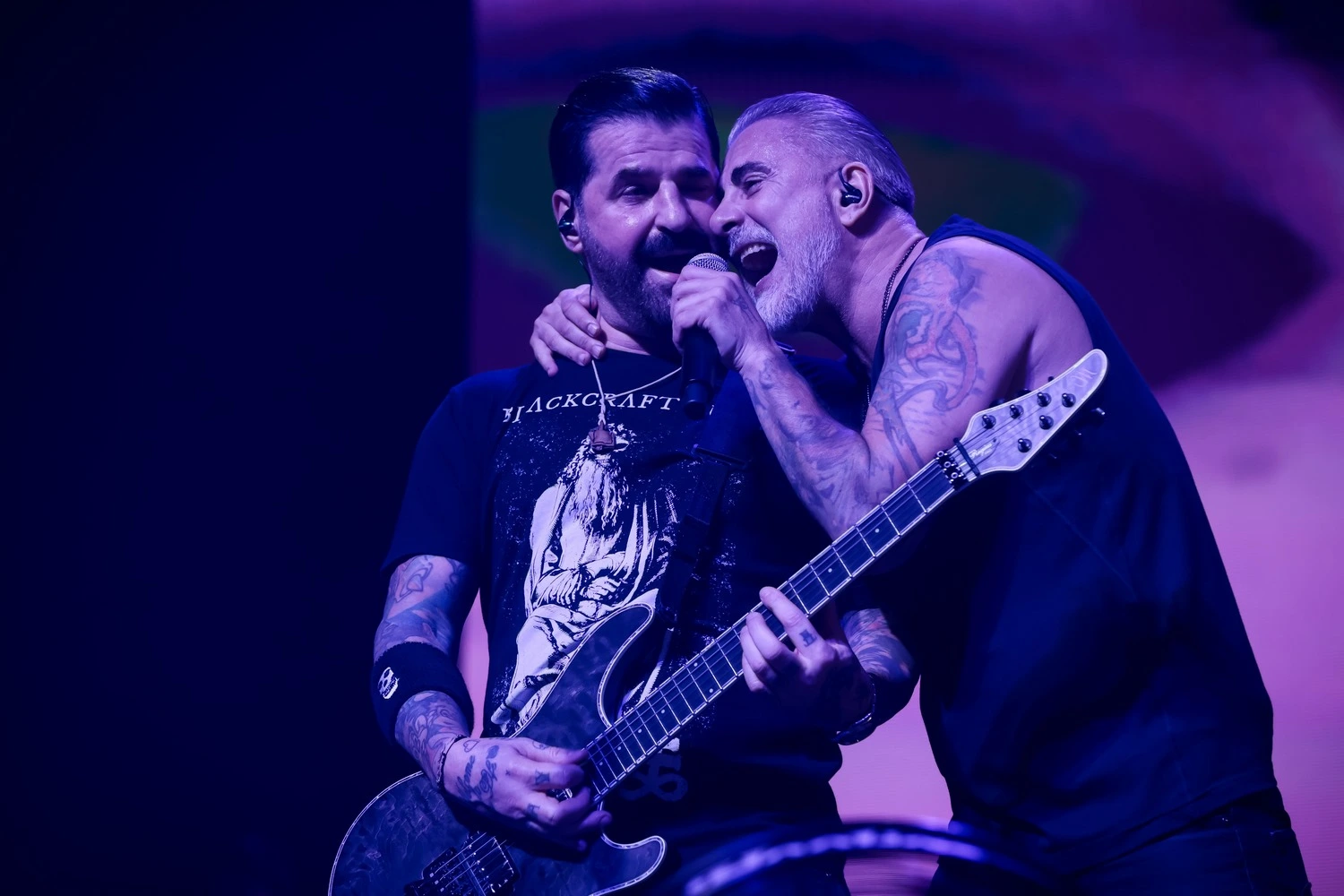 Egy nem túlgondolt, de mégis különleges LED-fal kompozíció biztosította gyakorlatilag a díszletet, ahol nemcsak az élő képeket lehetett látni, de különleges vizuálok is a szemünk elé tárultak, melyek sokszor a zenekar különböző korszakaihoz voltak kapcsolhatók. A pirotechnikával sem spóroltak, az első néhány sor egészen biztosan nem fázott, amikor különböző irányokból törtek elő a lángcsóvák és ahogyan az várható volt, szalagokat és konfetti esőt is kaptunk párszor.